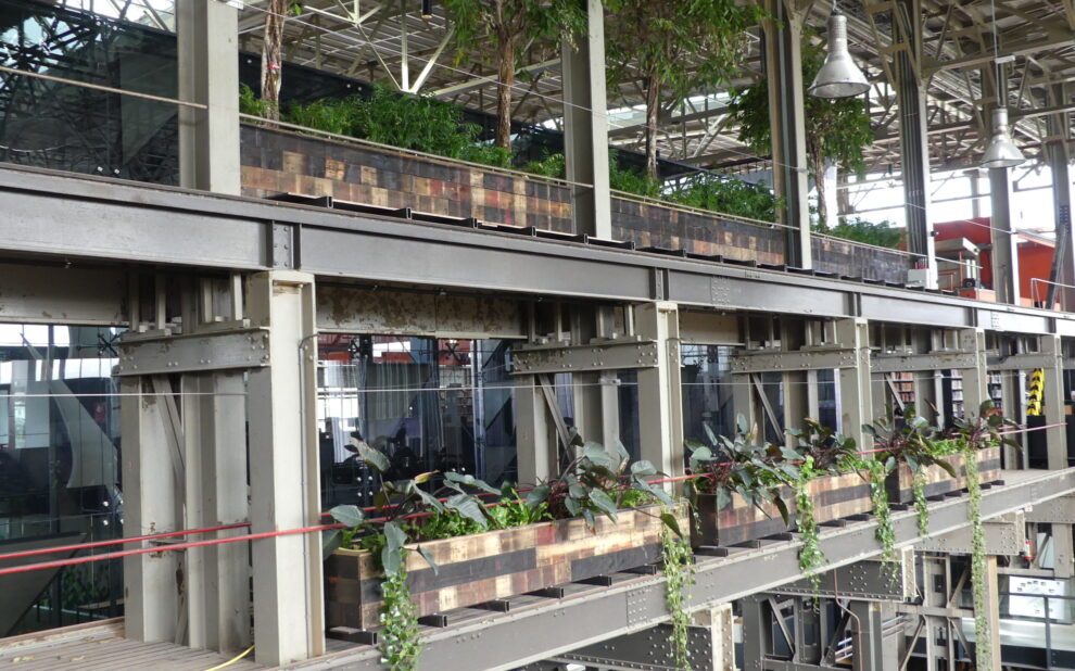 Donkergroen “File:Interieur Bibliotheek LocHal P1360251.jpg” by G.Lanting is licensed under CC BY 4.0